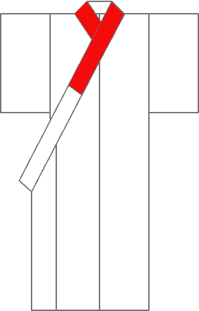 長着・丹前の共衿の掛け方は同じ。 夜着の場合は丈の両端を1cm折り伏せ縫いにして、地衿につけず浮かしておく